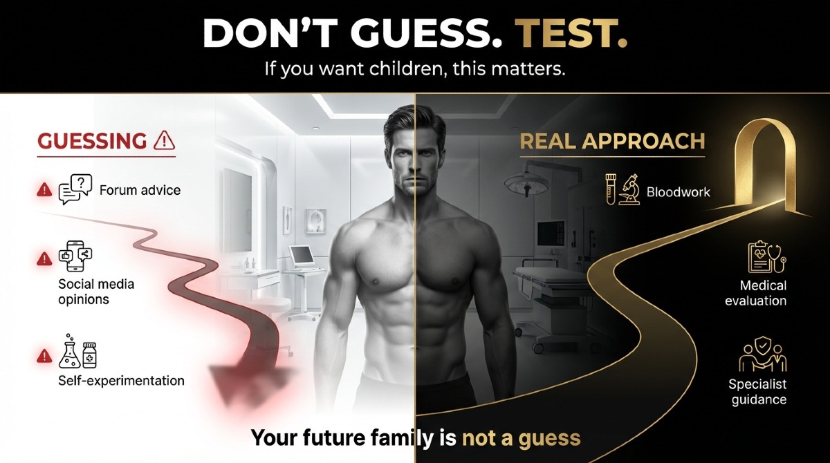 If you still want children, talk to a real doctor before you jump. Not a forum bro. Not some clown on social media. I mean a qualified endocrinologist or fertility specialist who understands male hormones and sperm, both.